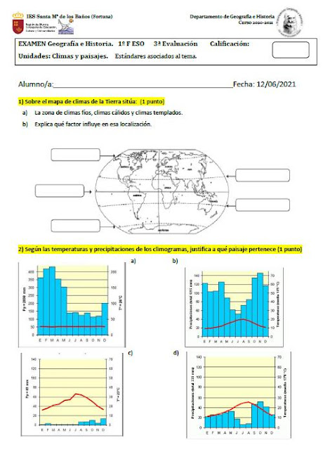 1º ESO.- Examen Paisajes y climas. Material didáctico para Unidades didácticas.